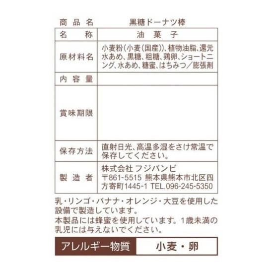 その他 | ・熊本の有名菓子メーカー、フジバンビの代表的商品です。 ・食べやすい棒状のドーナッツでまわりはサックリ、中はしっとりとした独特な食感。 ・甘すぎず油っこくないクセになる味で、どんな飲み物にもマッチします。 ・幅広い年代に喜んで頂けるお菓子です。 ・第24回全国菓子大博覧会 リッチモントクラブ賞受賞 ・第25回全国菓子大博覧会 名誉総裁賞受賞 |
